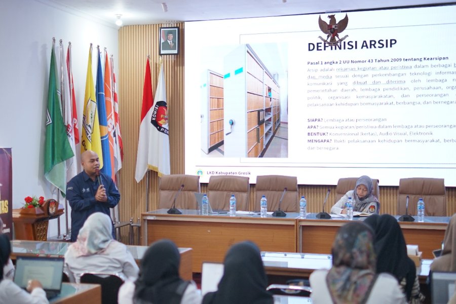 Komisi Pemilihan Umum (KPU) Kabupaten Gresik menggelar kegiatan Bimbingan Teknis (Bimtek) Pengelolaan Arsip dan Aplikasi Srikandi di lingkungan KPU Kabupaten Gresik. Kegiatan ini diikuti oleh seluruh staf sekretariat dan bertujuan untuk meningkatkan kapasitas pegawai dalam pengelolaan arsip serta penerapan digitalisasi dokumen. Kegiatan dibuka oleh Zuhri Firdaus, Anggota KPU Kabupaten Gresik, yang menekankan pentingnya penguatan birokrasi melalui peningkatan kompetensi pegawai dalam bidang kearsipan. “Kami berharap kegiatan ini dapat memberikan manfaat nyata bagi penguatan kapasitas pegawai KPU Gresik, terutama dalam mewujudkan tata kelola arsip yang tertib dan modern,” ujar Zuhri dalam sambutannya. Kegiatan ini dimoderatori oleh Abiydah Ilmayanti selaku Kepala Sub Bagian Umum, Keuangan, dan Logistik (KUL), dengan menghadirkan narasumber dari Dinas Perpustakaan dan Kearsipan Kabupaten Gresik, Efendi, memberikan materi pertama bertema “Pengelolaan Arsip”. Dalam paparannya, Efendi menjelaskan teori tentang kearsipan. Ia juga menjelaskan jenis arsip yang terdiri dari arsip dinamis dan arsip statis, serta empat kegiatan utama dalam pengelolaan arsip, yaitu penciptaan, penggunaan, pemeliharaan, dan penyusutan arsip. “Arsip perlu dikelola dengan baik agar tidak rusak dan mudah ditemukan saat dibutuhkan. Ini menjadi bagian penting dalam mewujudkan manajemen perkantoran yang efektif,” jelas Efendi. Sesi selanjutnya dipandu oleh Ayu Roihatul Jannah, yang membawakan materi mengenai Aplikasi Srikandi. Dalam kesempatan tersebut, Ayu tidak hanya menjelaskan teori, tetapi juga memberikan praktik langsung penggunaan website Srikandi, mulai dari proses login, pembuatan naskah keluar dan masuk, hingga penerimaan naskah masuk. Peserta tampak antusias mengikuti sesi ini karena dapat memahami secara langsung langkah-langkah penerapan sistem pengarsipan digital di lingkungan kerja. Melalui kegiatan ini, KPU Kabupaten Gresik berharap seluruh pegawai dapat menerapkan prinsip kearsipan yang baik, baik dalam bentuk fisik maupun digital, guna mendukung terciptanya birokrasi yang akuntabel, efektif, dan berbasis teknologi. ....