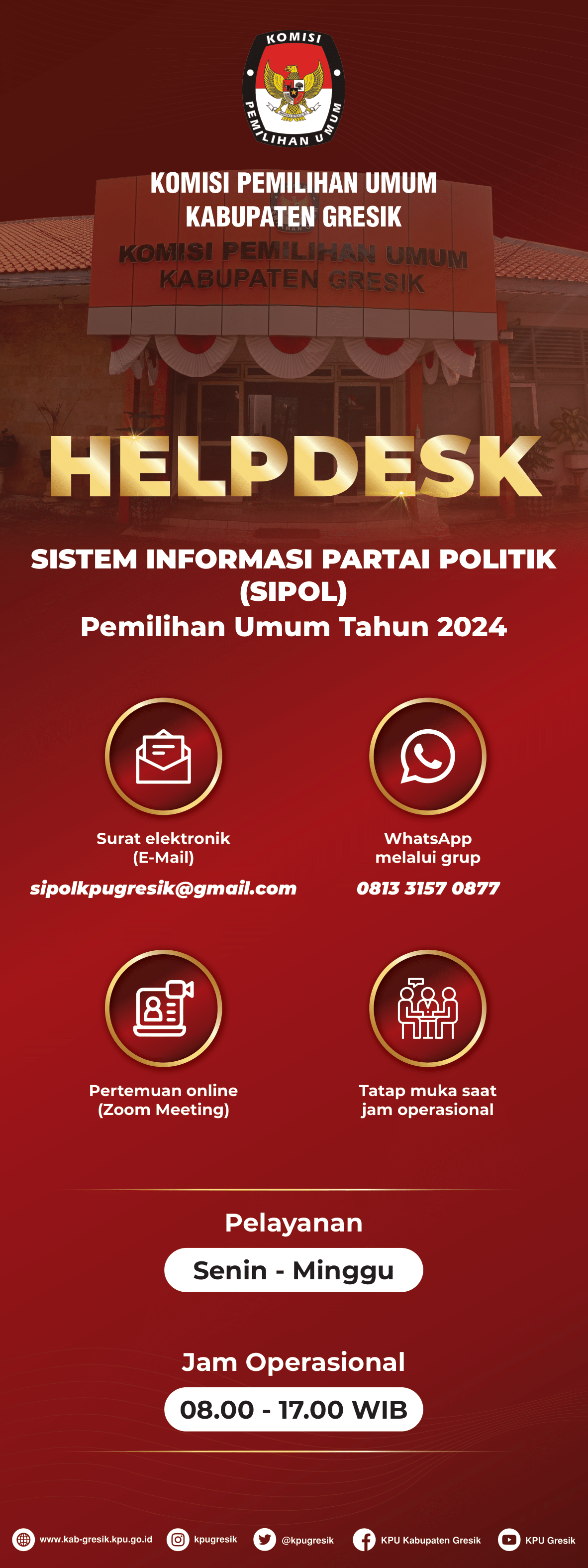 Helpdesk KPU Gresik juga berkenaan dengan Sistem Informasi Partai Politik (Sipol), juga menjadi bagian dari layanan yang dipenuhi jika Partai Politik menemui kendala.