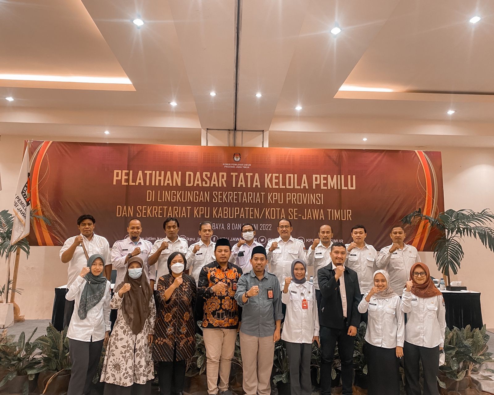 Guna mempersiapkan penyelenggaraan Pemilu Serentak 2024 yang berkualitas, Komisi Pemilihan Umum Kabupaten Gresik ikuti Pelatihan Dasar Tata Kelola Pemilu (TKP) untuk Pegawai Negeri Sipil (PNS) di lingkungan KPU se-Jawa Timur, pelatihan ini dilaksanakan secara bertahap selama dua hari, Rabu-Kamis, 8-9 Juni 2022 bertempat di Hotel Narita, jalan Barata Jaya XVII Nomor 57-59 Surabaya. Sesuai jadwal KPU Kabupaten Gresik mengikuti pelatihan tahap II, Kamis (9/06/22)