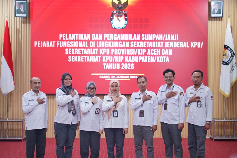 Gresik - Komisi Pemilihan Umum (KPU) Kabupaten Gresik mengikuti Pelantikan dan Pengambilan Sumpah/Janji Pejabat Fungsional Penata Kelola Pemilihan Umum yang diselenggarakanoleh KPU RI, pada Kamis (22/01/2026) secara daring melalui Zoom Meeting. Pelantikan ini dipimpin langsung oleh Sekretaris Jenderal KPU RI, Bernad Dermawan Sutrisno. Kegiatan pelantikan dilaksanakan dalam rangka pengangkatan pejabat fungsional di lingkungan Sekretariat Jenderal KPU, Sekretariat KPU Provinsi/KIP Aceh, serta Sekretariat KPU Kabupaten/Kota Tahun 2026. Dalam kesempatan tersebut, sebanyak 4 pegawai KPU Kabupaten Gresik resmi dilantik sebagai Pejabat Fungsional Penata Kelola Pemilihan Umum. Rangkaian kegiatan dilanjutkan dengan pengambilan sumpah/janji jabatan, penandatanganan berita acara, serta pembacaan Pakta Integritas sebagai bentuk komitmen profesionalitas, integritas, dan tanggung jawab dalam menjalankan tugas kepemiluan. Dalam arahannya, Sekretaris Jenderal KPU RI Bernad Dermawan Sutrisno menegaskan bahwa jabatan fungsional Penata Kelola Pemilu merupakan jabatan strategis. “Jabatan fungsional Penata Kelola Pemilu merupakan tanggung jawab penuh yang memiliki peran penting dan khas dalam kelembagaan KPU serta harus dijalankan secara profesional di seluruh satuan kerja,” tegasnya. Sementara itu, Ketua KPU RI Muhammad Afifuddin menyampaikan harapannya agar pelantikan ini menjadi awal yang baik bagi perjalanan karier para pegawai. Ia juga menyampaikan ucapan selamat serta menegaskan dukungan penuh pimpinan KPU RI terhadap seluruh aktivitas yang menunjang pelaksanaan tugas kepemiluan. Melalui pelantikan ini, KPU Kabupaten Gresik berharap sumber daya manusia di lingkungan sekretariat semakin profesional, berintegritas, dan kompeten, sehingga mampu mendukung pelaksanaan tugas dan fungsi kelembagaan KPU secara optimal dan berkelanjutan.