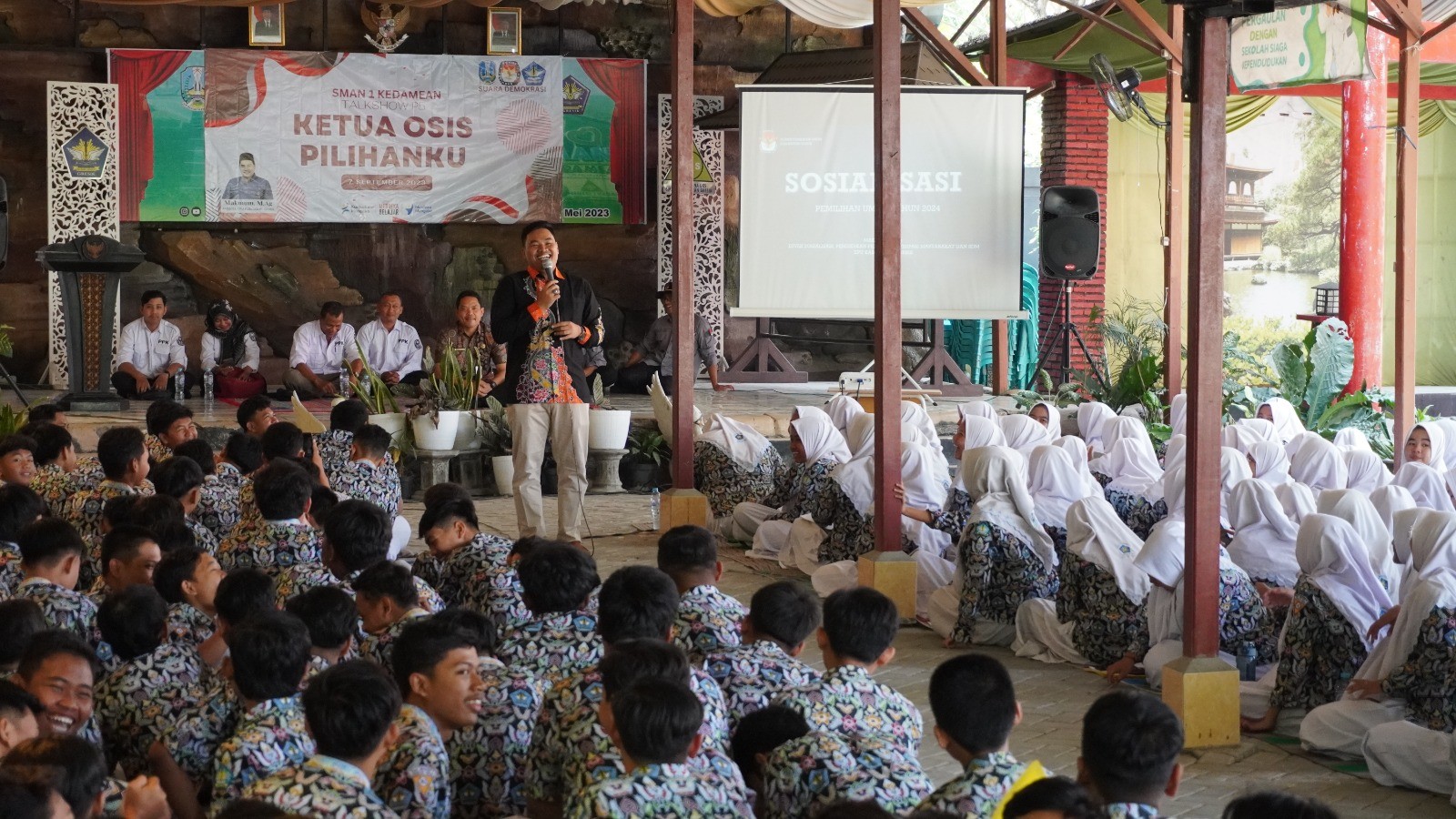 Dalam beberapa waktu ini, Komisi Pemilihan Umum (KPU) Kabupaten Gresik sedang gencar melakukan sosialisasi, pada calon pemilih untuk pemilihan umum tahun 2024 mendatang. Tidak ketinggalan, KPU juga memberikan perhatian pada siswa SMP, yang notabenenya adalah calon pemilih di masa depan, berupa melakukan pendidikan politik pra pemilih, yaitu kelompok usia yang saat ini belum memasuki usia pemilih namun dalam 5 (lima) tahun kedepan akan memasuki usia pemilih. Komisioner KPU Devisi Sosialisasi dan SDM Makmun, dalam hal ini melakukan kegiatan tersebut, di SMPN 2 Gresik, Jl. KH.Kholil No. 16 Gresik, pada Jum'at, (22/9/2023). "Kita harus terus masif melakukan pendidikan politik, kali ini kita sasar siswa SMP, karena sebagai penyelenggara pemilu, kita bukan hanya menyiapkan event pemilu 2024 saja, tapi kita harus berpikir jauh untuk pemilihan umum di masa mendatang, agar lebih sukses dan para siswa sadar pentingnya demokrasi dan pemilu," ujar Makmun pada awak media. Kepada sekitar 760-an siswa SMPN 2 Gresik, komisioner KPU Gresik dua periode ini menitikberatkan pada kesadaran akan kehidupan demokrasi pada para siswa. "Adik-adik sekalian, pagi ini kita akan belajar bersama tentang pemilu dan demokrasi, bagaimana demokrasi itu bisa kita terapkan mulai dari lingkungan terkecil kita, terutama sekolah dan keluarga," terang Makmun. Dalam kehidupan berdemokrasi, lanjut Makmun, sangat penting untuk ditanamkam sejak dini, di sekolah misalnya, bisa diterapkan melalui pemilihan ketua OSIS dan pelaksanaan programnya. "Kalau kita pahami singkat tentang demokrasi, definisinya adalah pemerintahan yang terbentuk dari rakyat, untuk rakyat, dan oleh rakyat. Begitu juga di Pemilihan OSIS, adik-adik harus menggunakan hak pilihnya, karena itu demi kepentingan bersama, sebagai latihan penerapan demokrasi di sekolah," jelas Makmun dihadapan para siswa. Selain itu, Makmun juga menjelaskan tentang Pemilu 2024, berupa tanggal pelaksanaan pemilu Rabu, 14 Februari 2024, penyelenggara pemilu yang terdiri dari KPU, Bawaslu, dan DKPP, hingga syarat menjadi pemilih, yaitu WNI yang telah berusia 17 tahun atau telah menikah. Sementara itu, Kepala Sekolah SMPN 2 Gresik Mohammad Salim menyampaikan terimakasih kepada KPU Gresik yang telah membagikan ilmu tentang pemilu dan demokrasi pada para siswa. "Nantinya kita akan terapkan nilai-nilai utama pemilu dan demokrasi pada anak didik kami, melalui pelaksanaan Pemilhan OSIS, kita juga sudah bentuk Komisi Pemilihan OSIS (KPO), dan sudah ada calon-calon ketuanya disini," pungkas Salim, sambil menunjuk para calon ketua OSIS SMPN 2 Gresik. (makmun/gresik)