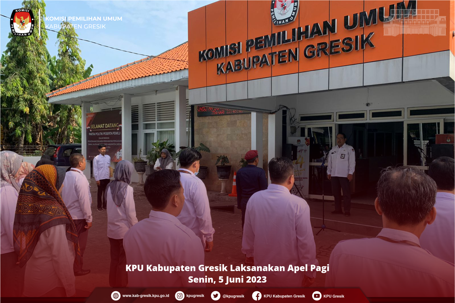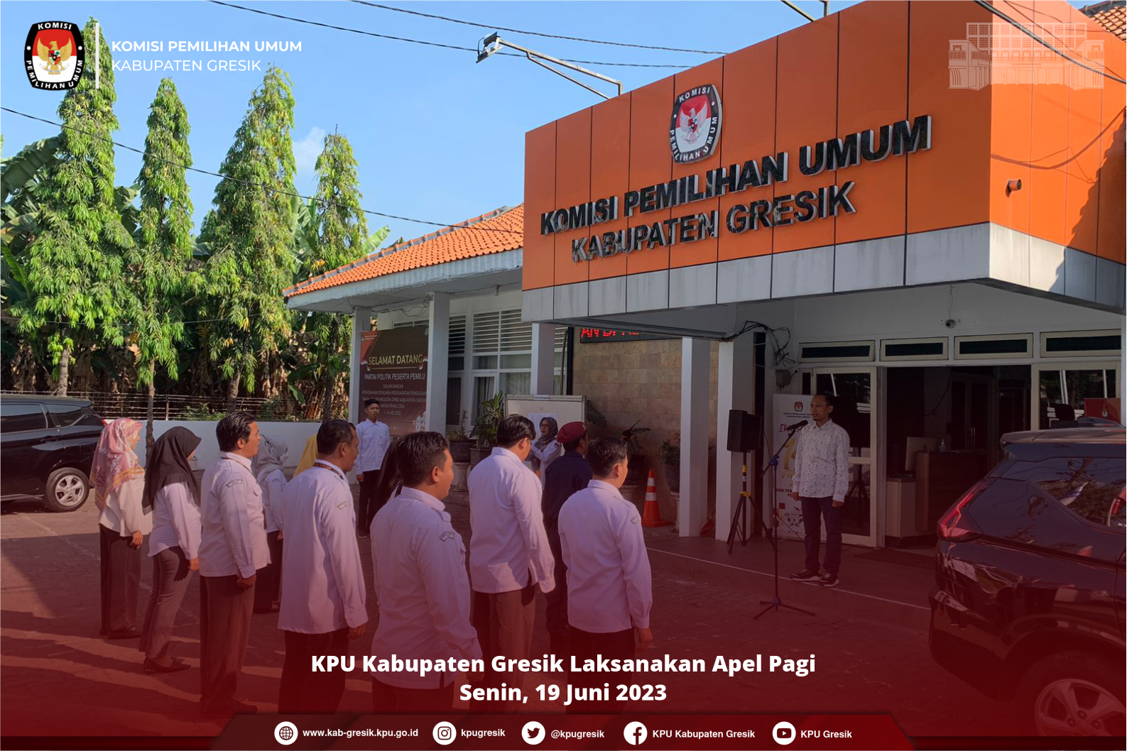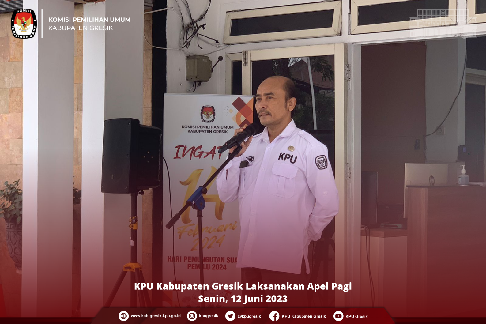 Senin, (19/6) apel pagi dihadiri oleh jajaran sekretariat KPU Kabupaten Gresik yang langsung dipimpin oleh Ketua KPU Kabupaten Gresik, Akhmad Roni. Semakin padatnya kegiatan yang akan dihadapi oleh seluruh Anggota dan Staff KPU Kabupaten Gresik, Akhmad Roni memberikan himbauan untuk seluruh peserta apel yang hadir untuk tetap menjaga kinerjanya dengan baik. “Kedepannya tahapan pemilu ini akan semakin padat, saya harap seuluh peserta yang hadir dapat menjaga kinerjanya agar tetap bagus, dan saya harap dapat menjaga soliditas dalam bekerja.” Terkait proses vermin bakal calon Akhmad Roni juga mengingatkan kepada verifikator dokumen bacaleg Partai Politik agar tetap menjaga kerahasiaan dari dokumen yang sedang diverifikasi. “Untuk seluruh verifikator yang telah diberi kepercayaan untuk memverifikasi data bacaleg yang mendaftar, saya tekankan lagi bahwa jangan sampai data tersebut tersebar ke masyarakat umum, karena data ini masih rahasia dan belum diperkenankan untuk dapat disebarluaskan.” Tutur Ketua KPU Kabupaten Gresik tersebut. Terakhir, sebagai pembina, Akhmad Roni menghimbau kepada seluruh jajaran sekretariat KPU Kabupaten Gresik agar tetap menjaga kesehatannya masing-masing. “TIdak lupa saya ingatkan kepada seluruh jajaran sekretariat KPU Kabupaten Gresik yang hadir pada Apel Rutin pagi ini agar tetap menjaga kesehatannya masing-masing. Istirahat yang cukup agar badan kita tetap fit sehingga kita dapat meningkatkan kualitas kinerja kita” pungkasnya
