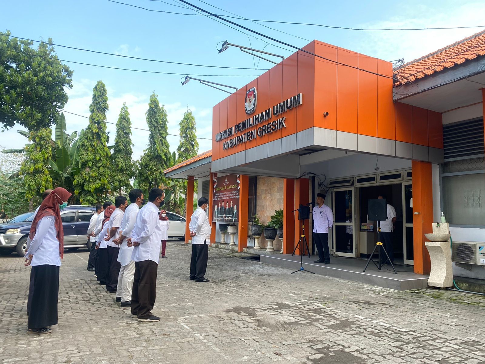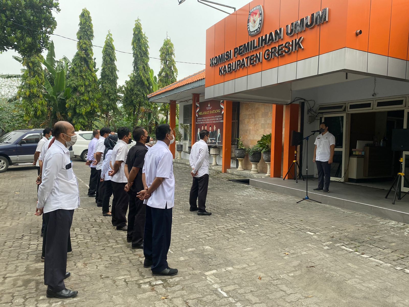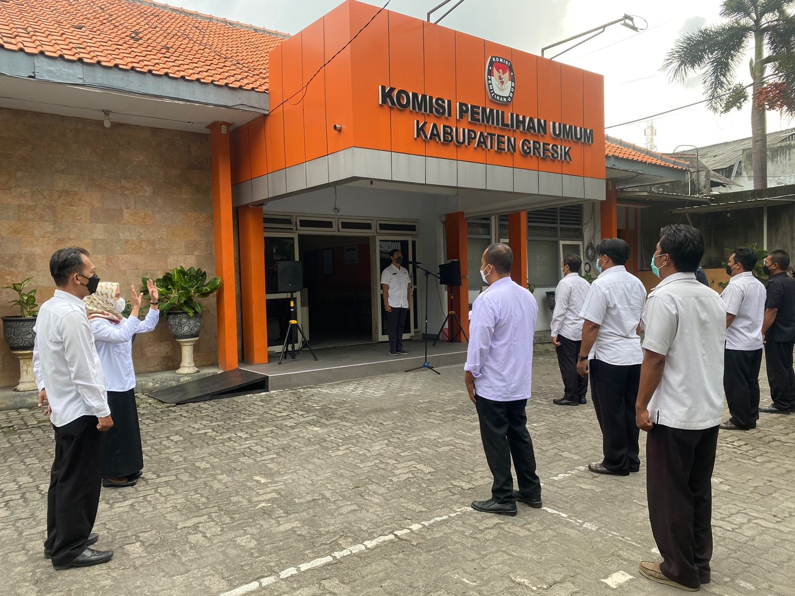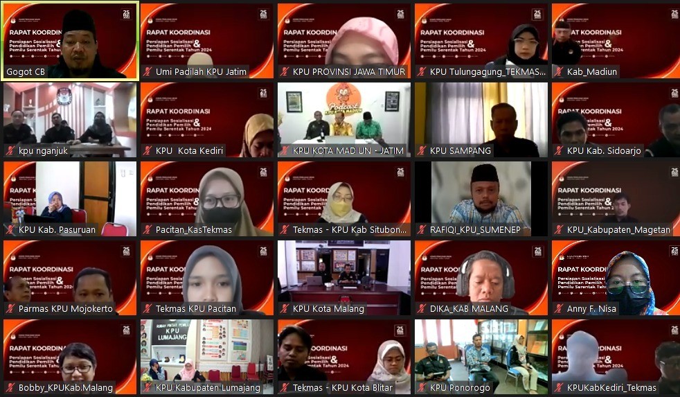 KPU Kabupaten Gresik bersama dengan 38 KPU Kabupaten/ Kota se-Jawa Timur ikuti Halal Bihalal Idul fitri 1443 H yang iselenggarakan oleh Sekretariat KPU Jawa Timur. Sesuai dengan Undangan KPU Provinsi Jatim Nomor 1197/SDM.05-Und/35/2022 tanggal 12 Mei 2022, kegiatan yang dilaksanakan secara daring ini turut diikuti oleh Sekretaris dan seluruh Kepala Subbagian Sekretariat KPU Kabupaten/Kota se-Jawa Timur, Jumat (13/05/22) Dalam sambutannya, Sekretaris KPU Provinsi Jawa Timur Nanik Karsini mengatakan bahwa masih dalam mas pandemic acara dilakukan secara daring. Dalam kesempatan ini, Nanik juga menegaskan bisa ada kesalan dalam pengambilan kebiajakan dan proses komunikasi agar salinh memafkan. “Selama berinteraksi, berkomunikasi mungkin banyak hal yang tanpa saya sadari atau tanpa sengaja baik melalui tutur kata, tindakan atau kebijakan – kebijakan yang saya ambil, Bapak Ibu semua dengan hati yang sangat tulus saya mohon maaf yang sebesar – besarnya, sekali lagi saya mengucapkan Selamat Hari Raya Idul Fitri 1443 H mohon maaf lahir dan batin”, Tutur Nanik Pada kesempatan yang sama, Divisi Sosdiklih dan Parmas KPU Kabupaten Gresik, Makmun dalam sambutannya mengatakan bahwa halal bihala ini merupakan momentum untuk silaturahmi dan saling mengingatkan agar segera mempersiapkan diri menyongsong tahapan pemilhan yang aka segera dilakukan. Lebih lanjut, acara dilakukan dengan closing statement dari Sekretaris KPU Provinsi Jawa Timur kepada seluruh Kasubbag baru agar segera menyesuaikan diri. Mengingat tahapan membutuhkan kesiapan baik secara mental maupun fisik. (kpugresik/iga)
