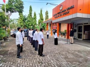 KPU Kabupaten Gresik jalankan rutinitas baru yakni membaca teks Pancasila. Hal tersebut sesuai dengan Surat Dinas Komisi Pemilihan Umum Republik Indonesia Nomor 604/SDM.03.5-SD/05/KPU/VI/ 2021 tertanggal 30 Juni 2021. Di mana pertanggal 1 Juli seluruh KPU Pusat, Provinsi, Kabupaten/kota wajib melakukan pembacaan. Pembacaan teks Pancasila dilakukan bebarengan dengan apel pagi, pada Senin (17/01/2022). Apel pagi yang dilakukan secara langsung diikuti oleh seluruh Kasubag dan Staf KPU Gresik. Sekretaris KPU Kabupaten Gresik, Achmad Fahruddin menegasakan bahwa pelaksanaan pembacaan teks Pancasila ini sesuai dengan intruksi KPU RI guna meningkatnya rasa cinta tanah air. Dengan begitu, seluruh staf KPU dapat menerapkan dan mengaktualisasi setiap butir-butir Pancasila baik saat bekerja ataupun dikehidupan sehari-hari. “Tidak lain tidak bukan, karena pembacaan teks Pancasila ini untuk menambah rasa kecintaan kita kepada NKRI. Kemudiaan menambah wawasan kebangsaan kita terhadap tanah air Indonesia. Sehingga dengan adanya kegiatan ini, kami sebagai penyelenggara Pemilu sebaiknya bisa menjadi contoh,” pungkas Udin Lebih lanjut, Udin menyampaikan bahwa pembacaan Teks Pancasila ini bersifat wajib di ikuti oleh seluruh anggota dan staff KPU dan akan dijadikan sebagai rutinitas setiap hari nya dan dilanjutnkan di hari di minggu-minggu berikutnya. “Kegiatan ini sifatnya wajib, jadi dari tingkatan Komisioner, Sekretaris dan jajarannya wajib mengikuti tanpa terkecuali. Dan pemcaan ini wajib dilakukan setiap hari kecuali jika sedang ada tugas dinas di luar,” imbuhnya (kpugresik/iga)