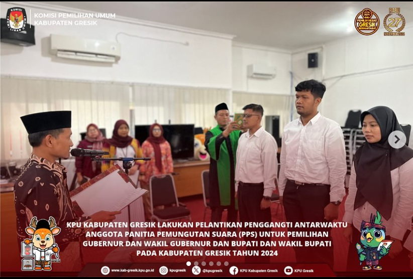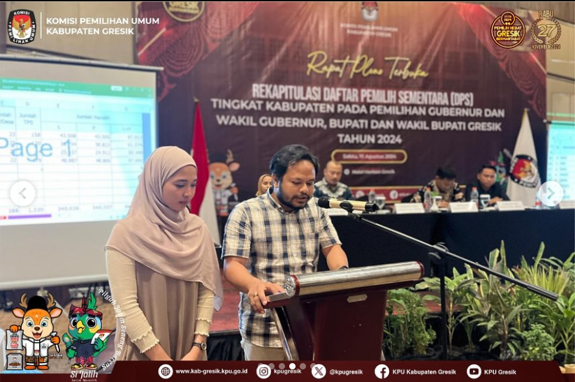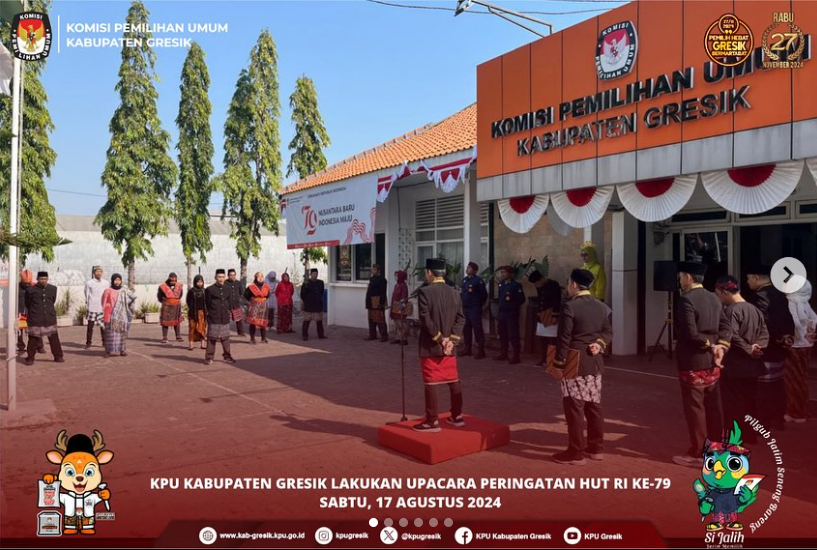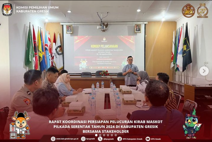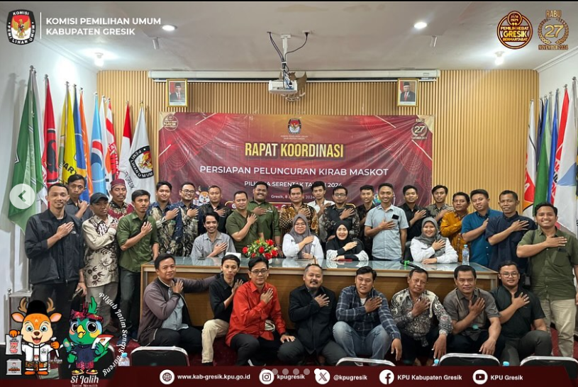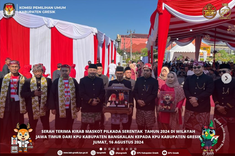Pelaksanaan Serah Terima Kirab Maskot Pilkada Serentak Tahun 2024 jalur 1 hari pertama di Kabupaten Gresik yang merupakan acara Penerimaan Maskot 'Si Jalih' dan 'Si Jago' dari KPU Kabupaten Bangkalan ke KPU Kabupaten Gresik. Penerimaan maskot berlangsung di GKB Convex, Jumat (16/08/2024) Ribuan peserta dari Badan Adhoc PPK serta PPS berkumpul sejak pukul 13.00 WIB dengan mengenakan busana adat yang menambah kesan keberagaman dan antusiasme saat acara berlangsung. Acara dimulai dengan kedatangan Ketua KPU Bangkalan, Elmi Abbas untuk menyerahkan Maskot Pilgub Jatim Si Jalih bersama Maskot Pilbup Bangkalan Bang Jago dan Jebbing Rama kepada Ketua KPU Gresik Ahmad Taufik. Berlangsung spektakuler, kegiatan ini diisi dengan rangkaian acara menarik. Mulai dari marching band, atraksi barongsai, tari legendaris damar kurung, menarikan jingle Pilbup Gresik dan Pilgub Jatim dan penampilan sepesial dari Dudy Oris ex Yovie & Nuno hingga kirab mengelilingi kawasa GKB Gresik. Ketua KPU Gresik, Ahmad Taufik menyampaikan, mengusung tema pilkada serentak sebagai sarana integrasi keberagaman budaya di Jawa Timur diharapkan dapat Meningkatkan Kesadaran Multikultural, untuk memperkuat rasa persatuan dan kesatuan di antara berbagai kelompok budaya di Gresik yang kaya dengan berbagai etnis. “Harapannya kegiatan ini dapat membantu menciptakan suasana pilkada yang lebih harmonis dan integratif, terutama di Kabupaten Gresik yang terdiri dari berbagai suku, agama dan budaya. Ada Islam, Budha, Hindu, dan Kristen, namun kita tetap rukun di tengah keberagaman,” tuturnya. Sementara itu, Divisi Perencanaan dan Logistik KPU Jatim, Miftahur Rozaq menuturkan kirab maskot menjadi salah satu upaya edukasi bagi seluruh elem masyarakat. “Kirab Maskot ini murni tercetus dari KPU Provinsi Jawa Timur. Nantinya setelah 39 maskot se jawa timur berkumpul dan di kirab di Surabaya menjadi bukti keanekaragaman budaya masyarakat di Jawa Timur. Ingat semboyan kita berbeda-beda tetap satu jua, semoga kontestasi politik Pilkada tidak memecahkan persatuan. Mari tetap rukun di tengah perbedaan,” tuturnya.