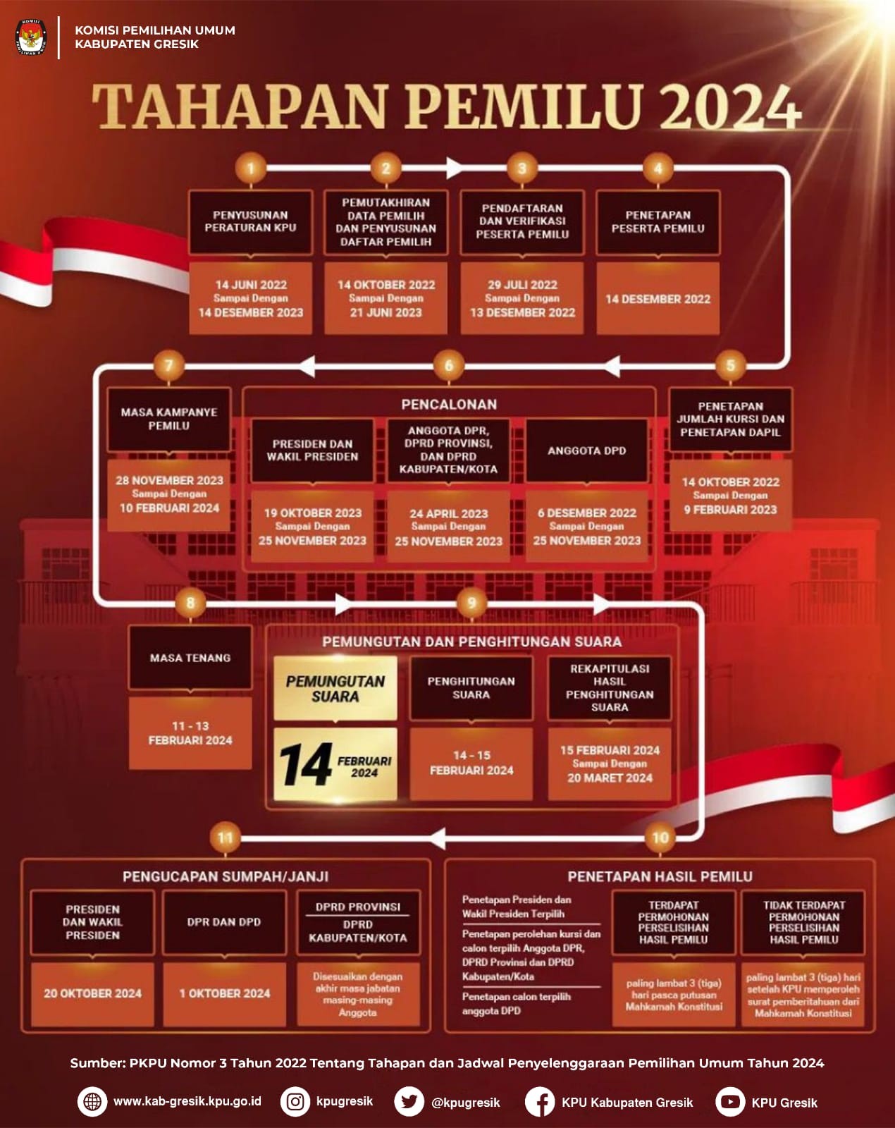 Berikut disampaikan Peraturan Komisi Pemilihan Umum Nomor 3 Tahun 2022 tentang Tahapan dan Jadwal Penyelenggaraan Pemilihan Umum Tahun 2024.